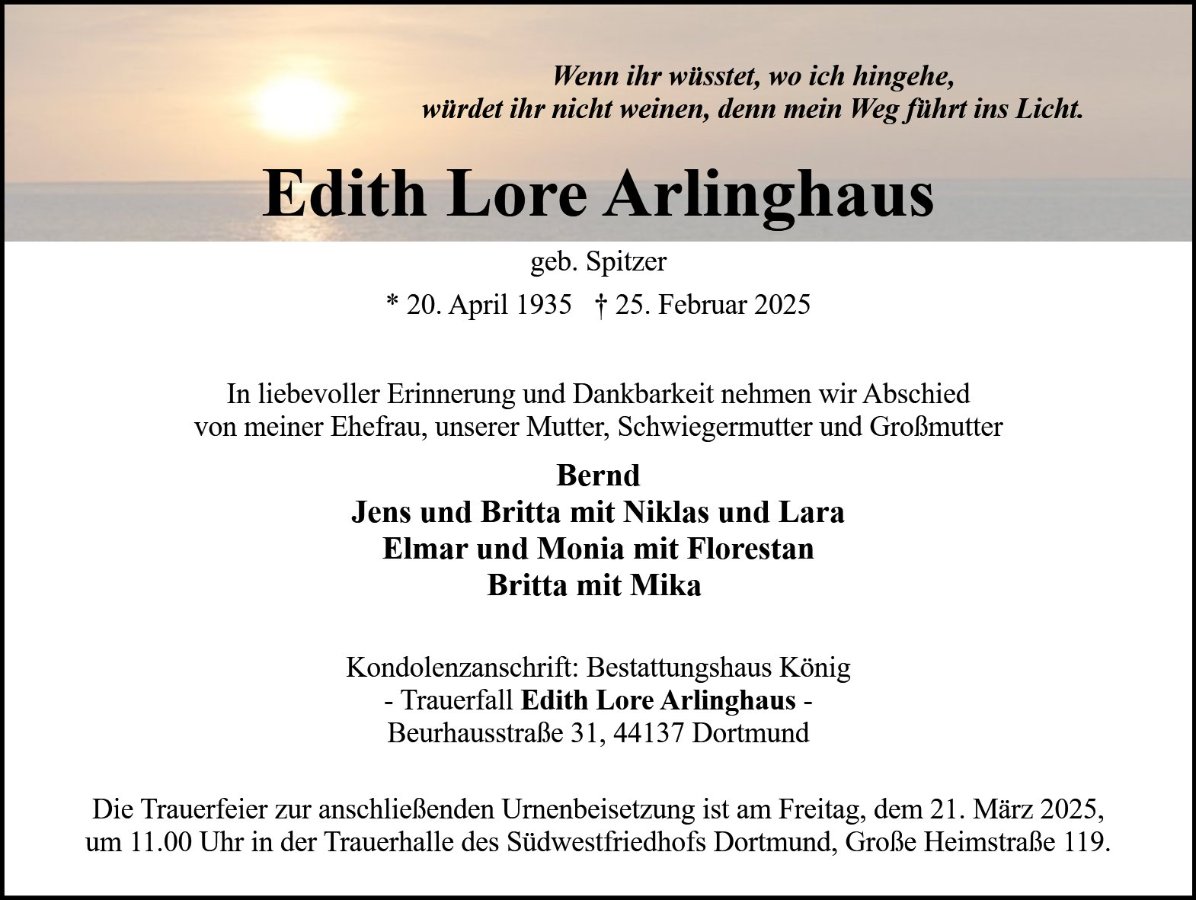 Edith Lore Arlinghaus geb. Spitzer